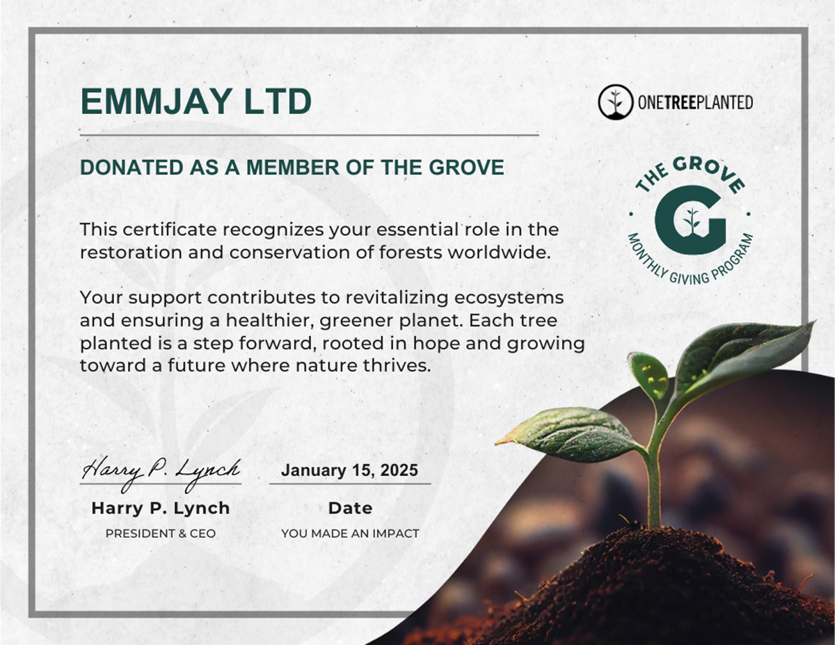 This certificate recognizes your essential role in the restoration and conservation of forests worldwide.